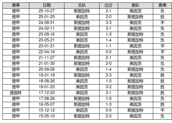 好意思因茨 VS 斯图加特两队近10年的交战次数为19场,好意思因茨6胜4平9负,赢球概率为31.6%,平局概率为21.1%,输球概率为47.4%。